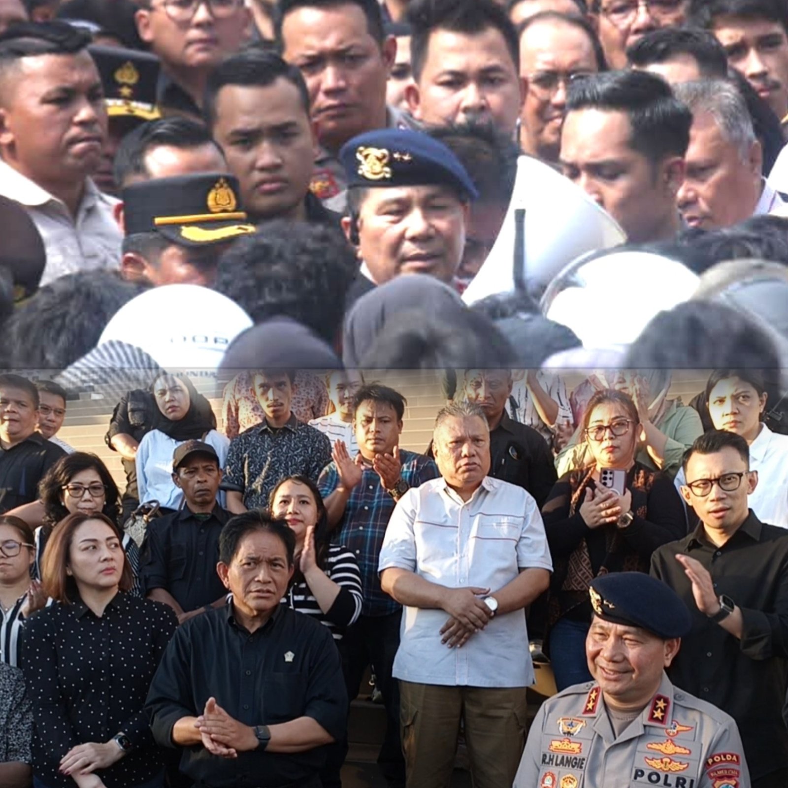 “Luar biasa bapak Kapolda, begitu berani turun langsung menemui para pendemo. Bahkan sampai beberapa kali balik turun mendekati kerumunan pendemo. Baru kali ini saya lihat Kapolda yang turun langsung seperti ini,” beber Ketua DPRD Sulut dr Fransiscus Andi Silangen.